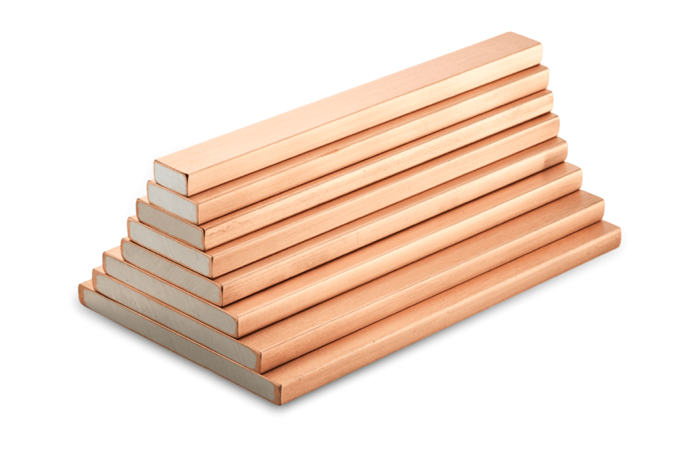 獨(dú)特的復(fù)合性能,銅鋁界面為冶金結(jié)合,產(chǎn)品性能高,同時(shí)具備銅的導(dǎo)電性和鋁密度小的特性。