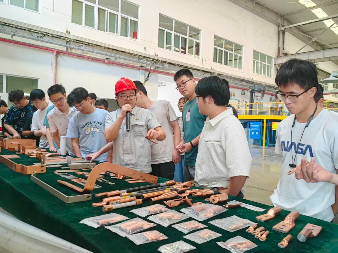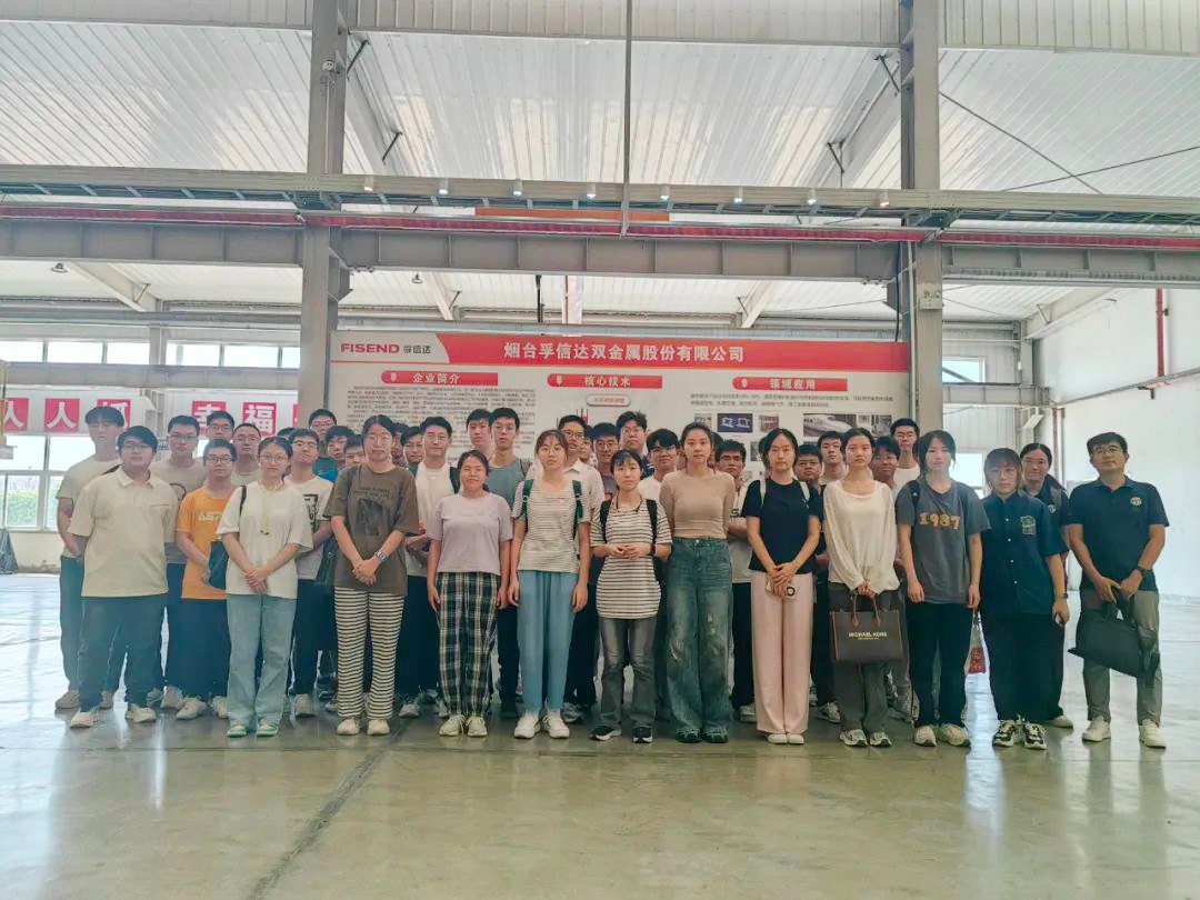 2024年8月24日,山東大學2021級金屬材料專業(yè)和材料物理專業(yè)40余名師生到煙臺孚信達雙金屬股份有限公司進行了參觀學習。在接受了嚴格的安全培訓之后,工作人員帶領學生們深入生產一線,詳細講解了從原材料到熔鑄、到成型、到成品的每一個加工過程,幫助學生更直觀清晰地了解了銅鋁復合材料連鑄原理和生產流程。